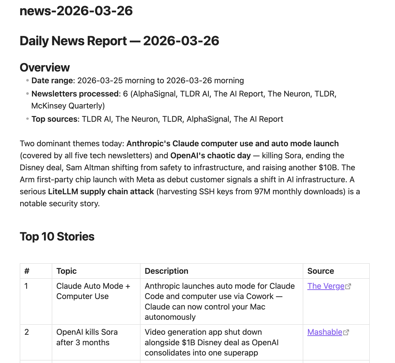 Each morning I have an email digest to quickly browse through, as well as context about the people and companies I’m going to meet. I get alerted to new things throughout the day as it’s elevated to my ACTIONS list. Also, when I have something I want to remember or start working on, I just send an instruction to the agent.